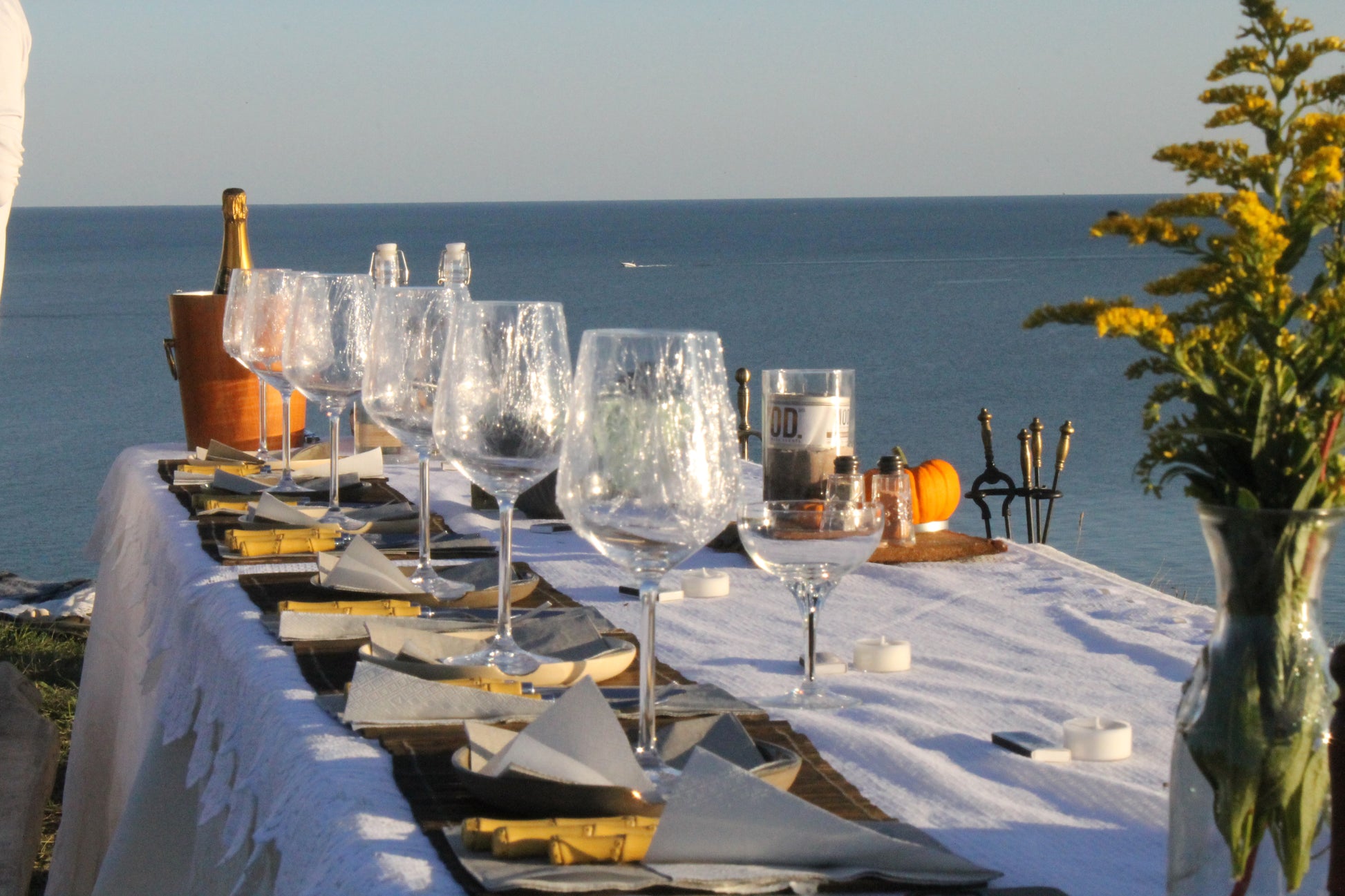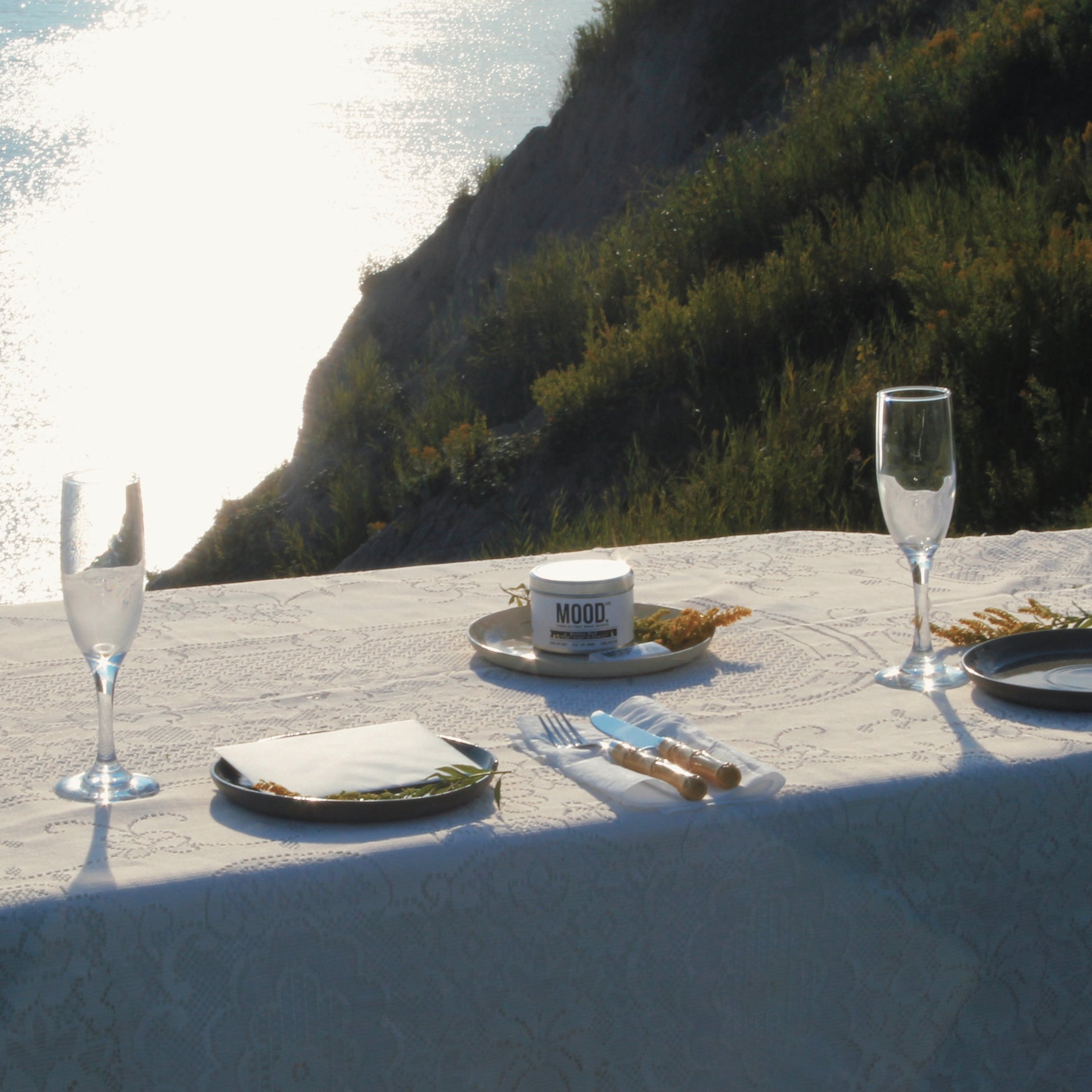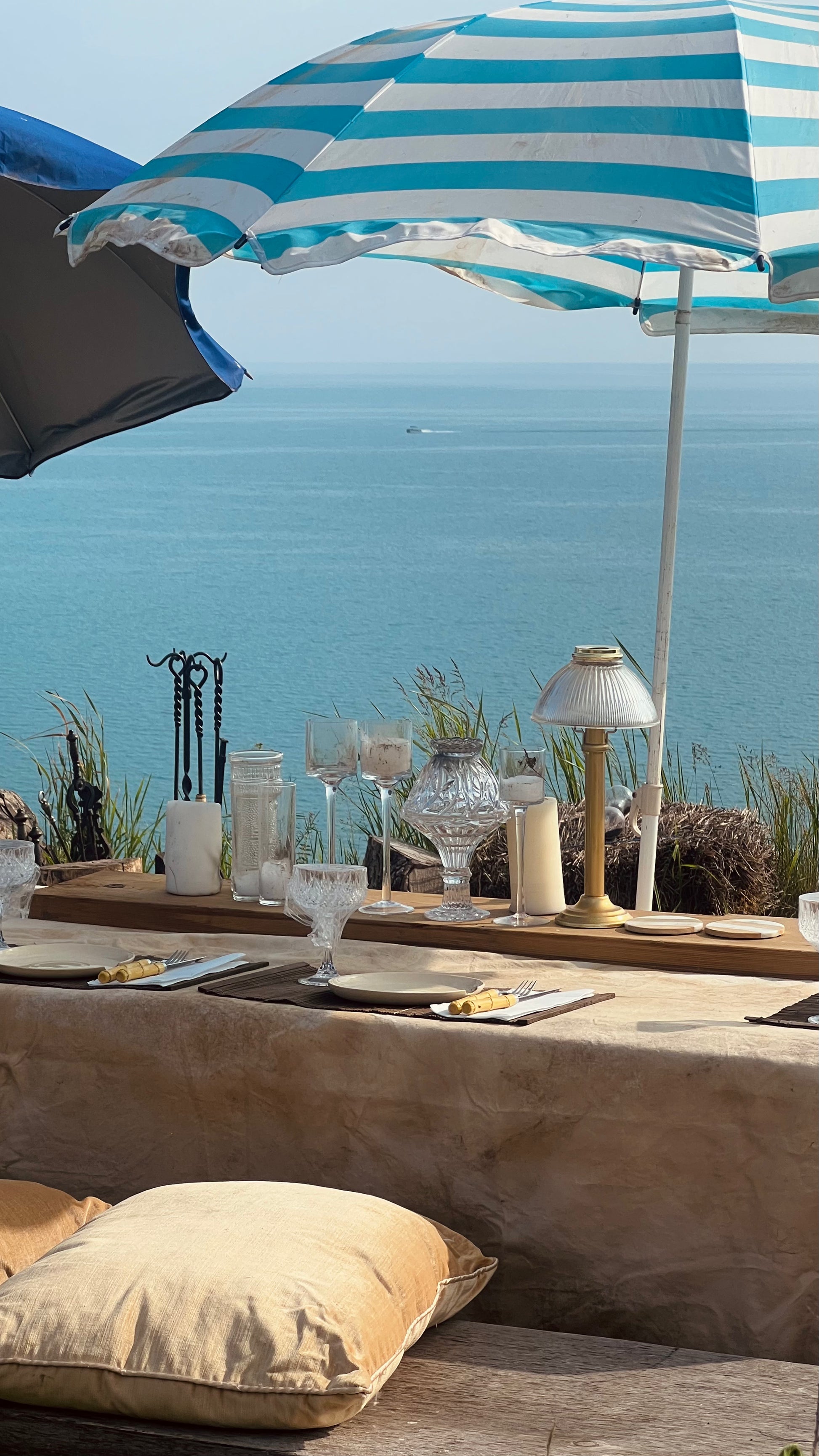 Arrive early to enjoy the beach before your experience begins. You’ll enter through a charming mini corn maze that leads to our beautifully set tablescape. From there, you’ll be invited to close your eyes. With just a few guided steps, your senses will awaken through the sounds of waves, the aroma of fresh herbs, and an introduction song. After a deep, grounding breath, you’ll open your eyes to one of the most breathtaking views.
