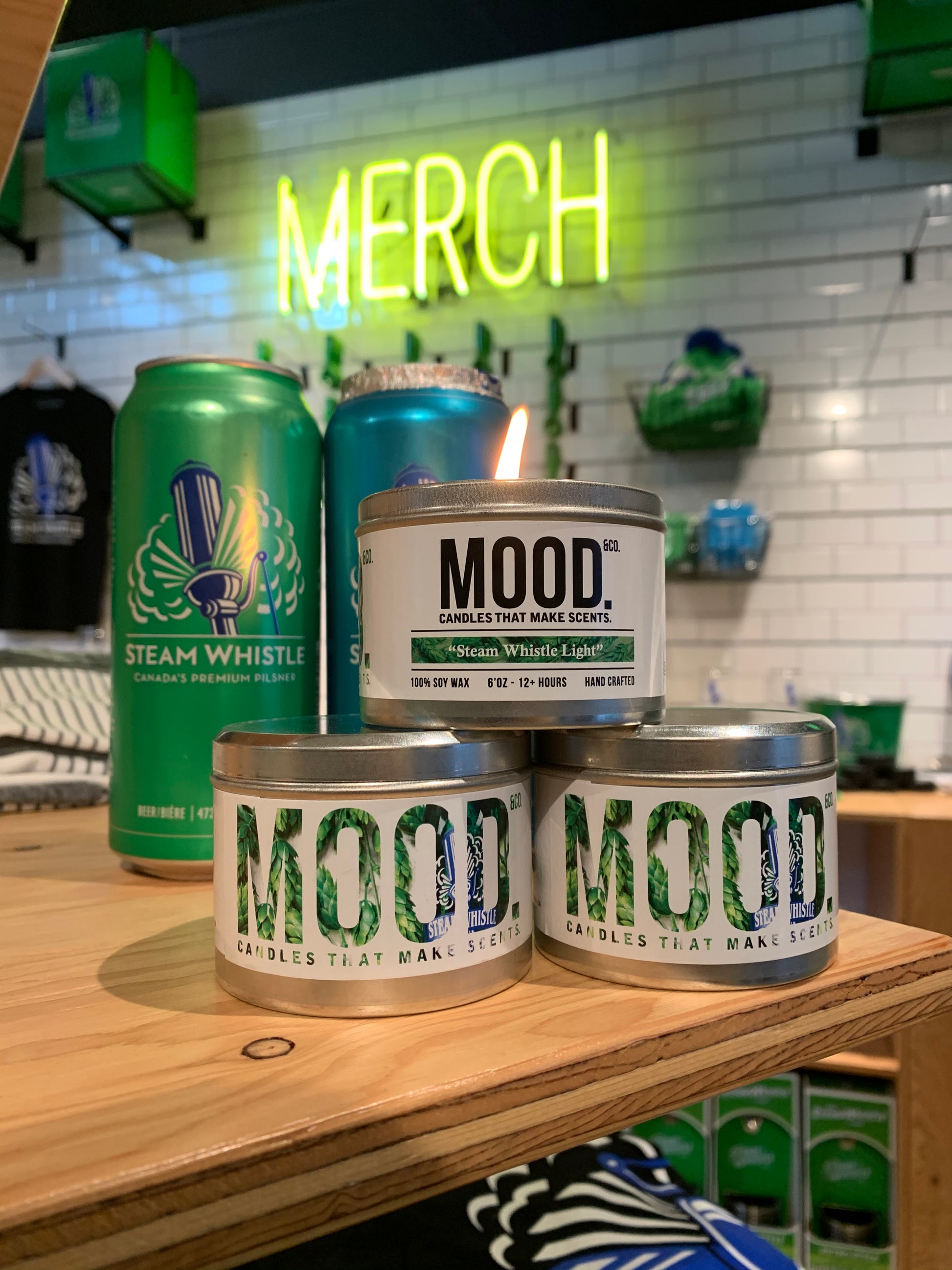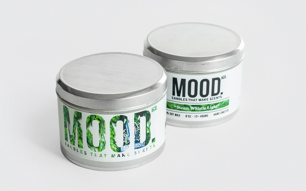 Dusted with hops and malted barley, these candles are the result of a collaboration with Steam Whistle.